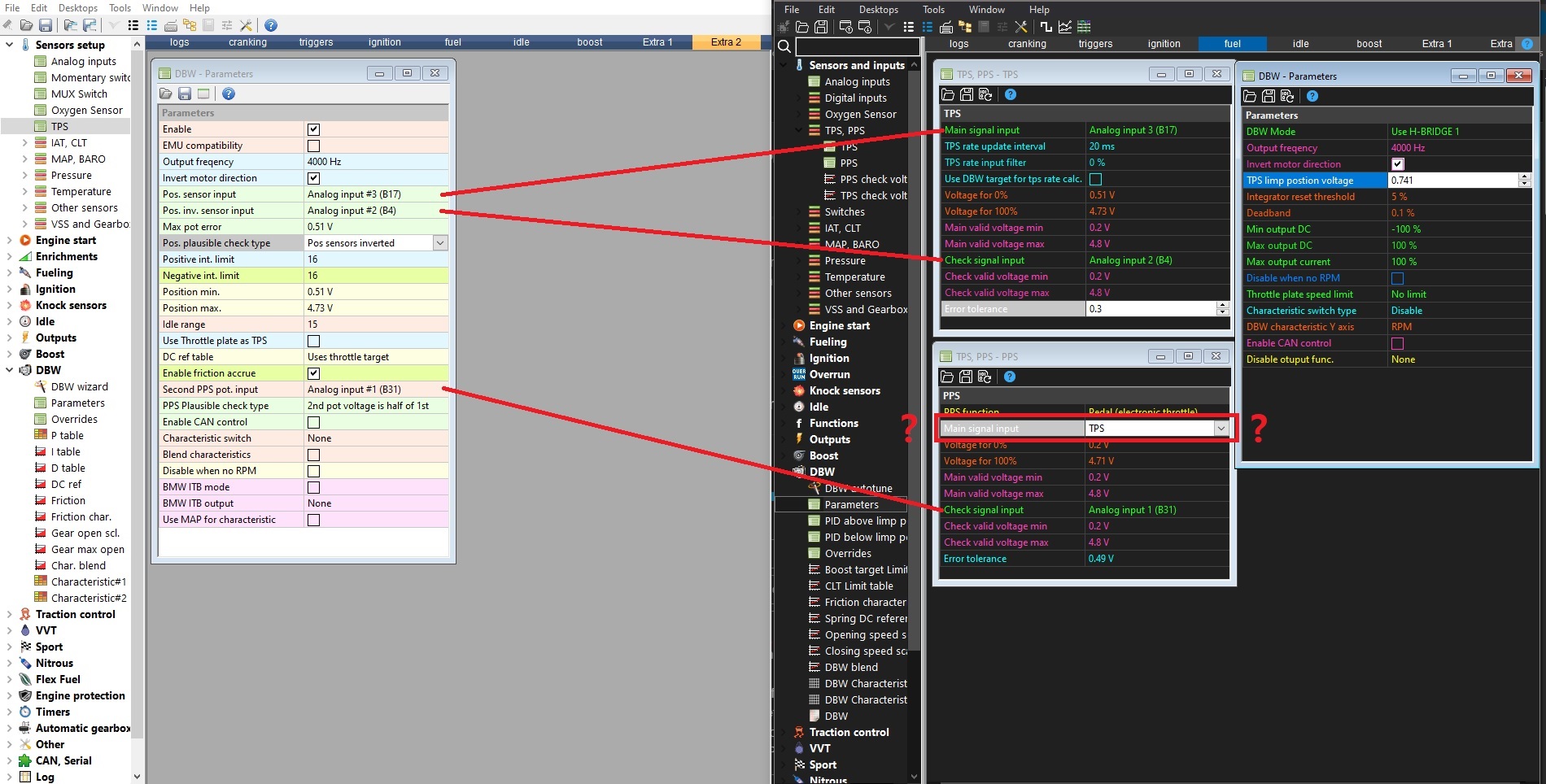 also in the DBW settings of V2, there are 3 inputs. One for TPS, secondary TPS for error check. and then secondary PPS for error check. Is there no primary set for PPS in v2? or better yet, how do i need to set up my V3 map to duplicate what was working in v2.