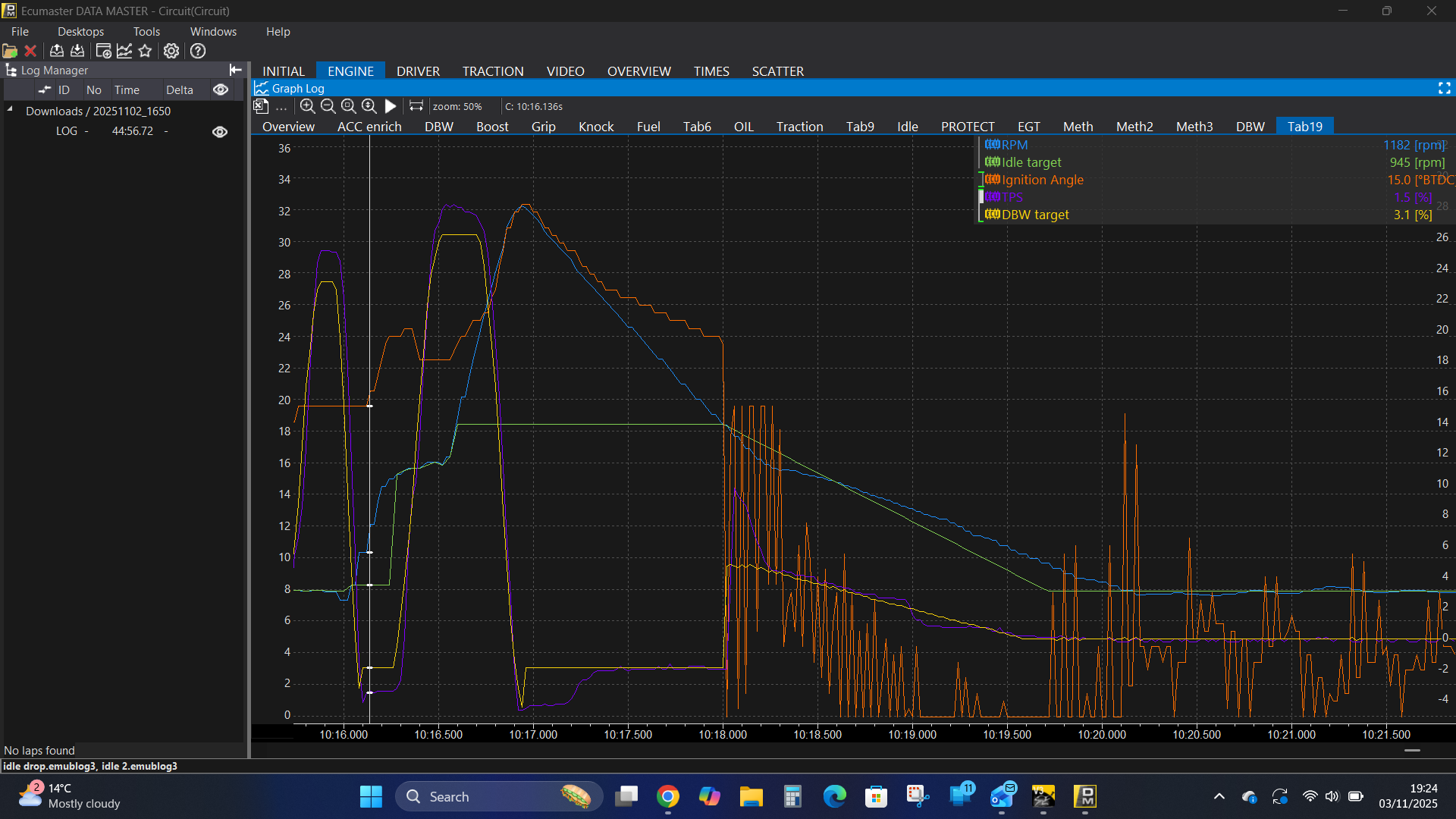 Idle air PID isn’t doing much either but ignition is way faster at catching rpm drops.