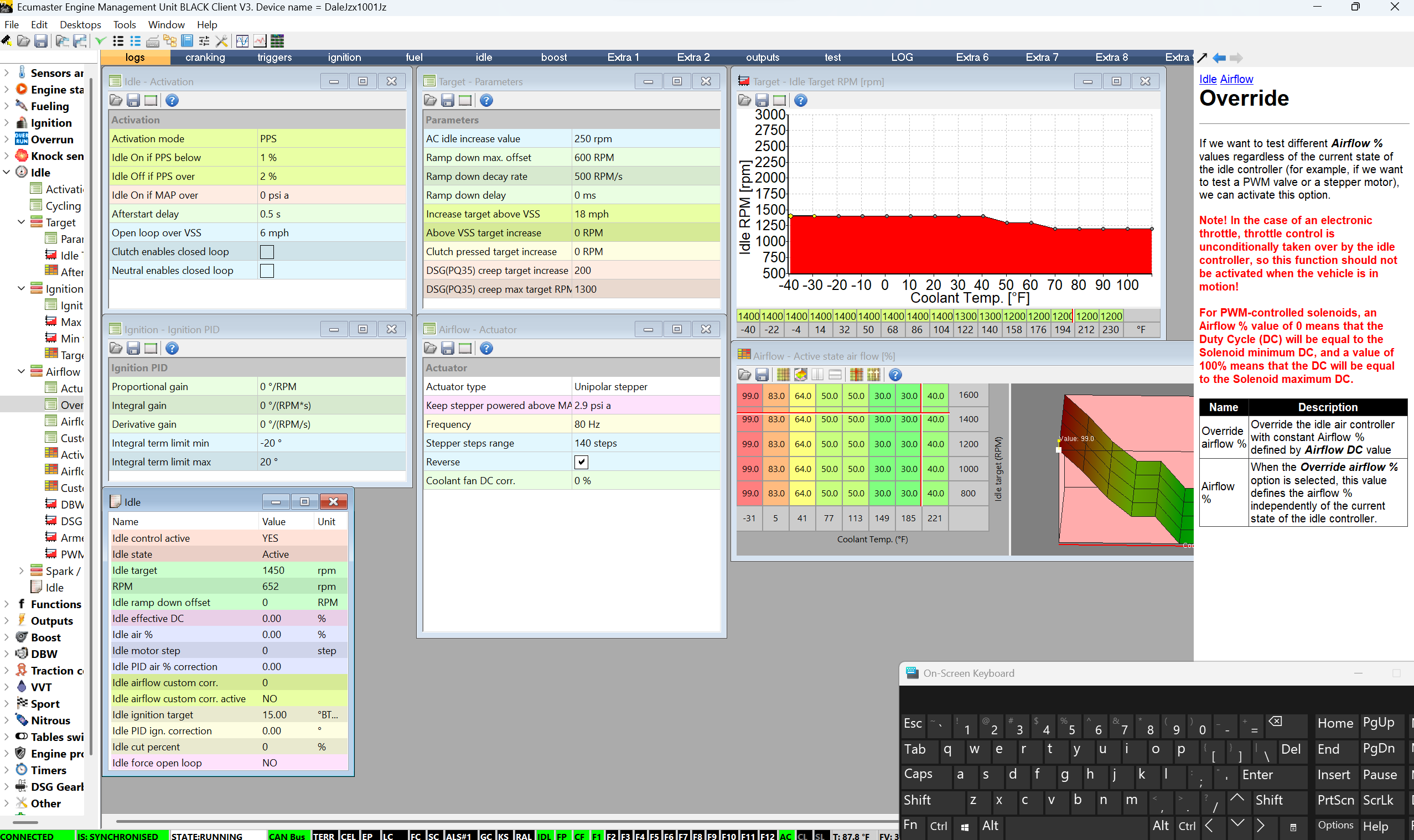 I took some screen shots of the setup , overriding and changing to switch based however does activate the IACV im a little confused on what im missing !