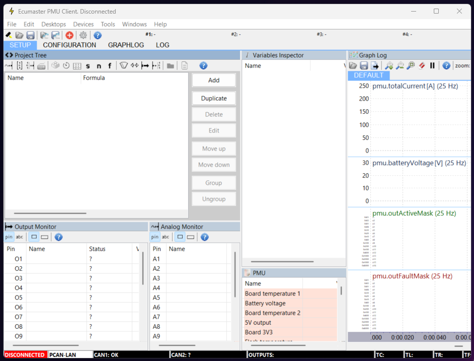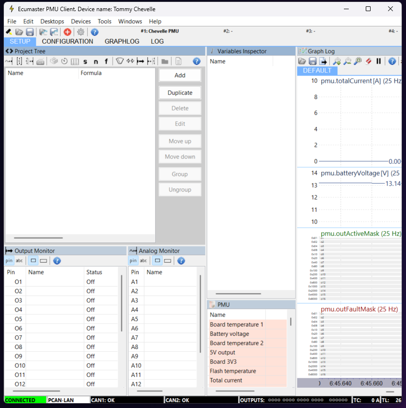 Here’s what the PMU configuration software looks like. Note the PCAN LAN in the lower left: