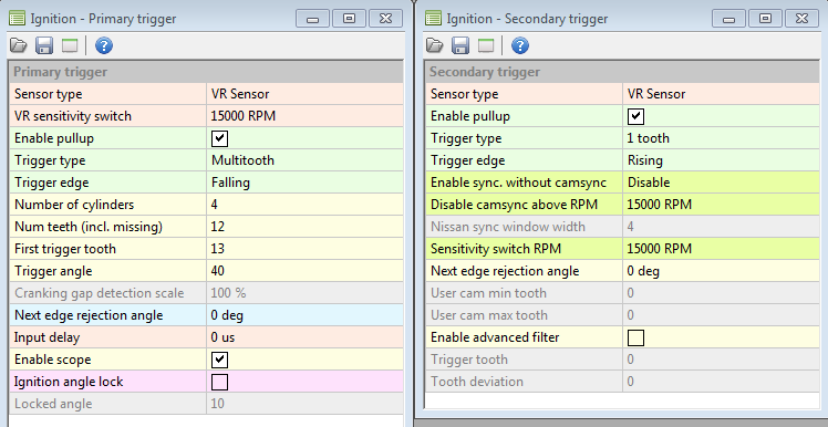 I am using 2 VR sensors, one with 24 teeth and the other with 1 tooth.
